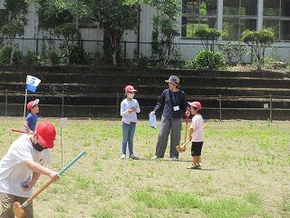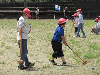 笛水の地域の方は、グランドゴルフがとても上手です。子どもたちも事前に練習をして腕を磨きました。当日が楽しみです。