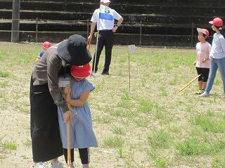 グランドゴルフでは、地域の方々に教えていただきながら、楽しい時間を過ごしました。また、何人かの人たちが、ホールインワンを出すなど、ナイスショット続出でした。