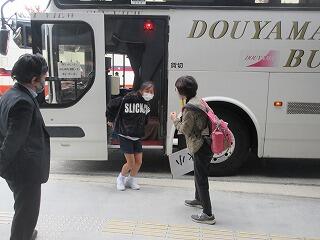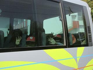 青少年自然の家のバスで出発