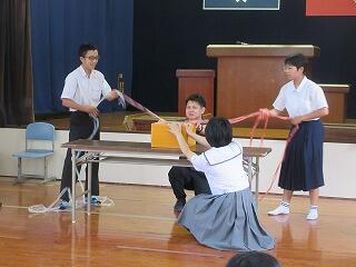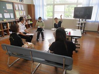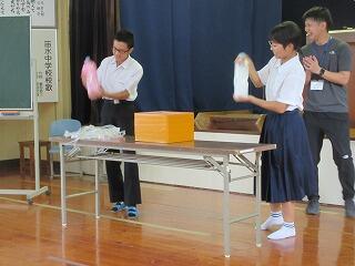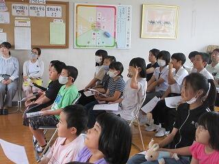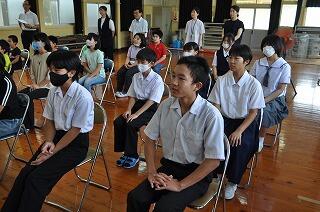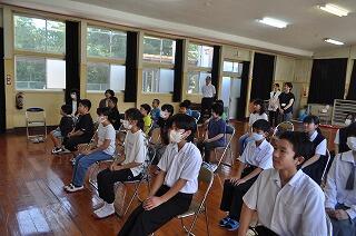 夏尾中に、本校と西岳中が集まって、腰塚勇人先生を講師にお迎えして実施されました。
