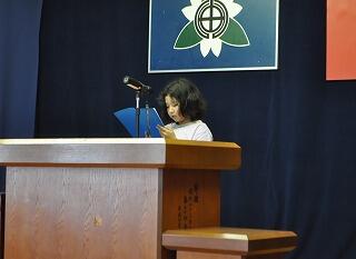 作文の表彰の後、代表の児童・生徒が発表が発表しました。テーマは、「郷土」「家族」「心が動いたこと」「学校」について書いた作文でした。会場でも涙を流す方たちもいらっしゃる感動的な時間でした。 3年生代表作文発表「ぼくのお母さん」