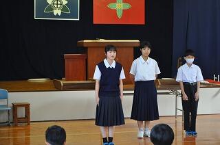 新任式では、新しい先生方を子どもたちの歌でお迎えし、歓迎の言葉を未央さんが述べました。