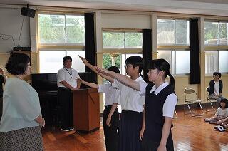 みどりの少年団の結団式を行いました。今年は団長に姫乃さん、副団長に姫花莉さんと未央さんがなり、みんなをまとめてくれます。