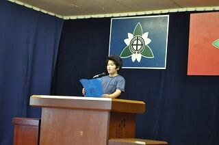 始業式では、月蕾さんが、今年度頑張りたいことを堂々と発表しました。