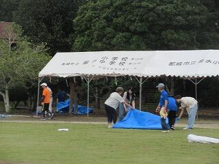 19日(日)にある秋祭りに向けて、全校で準備をしました。会場づくりや外掃除、トイレもきれいにしました。