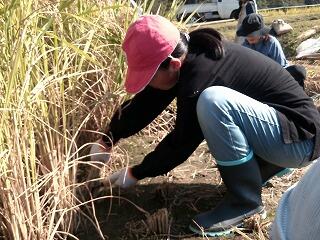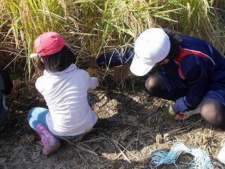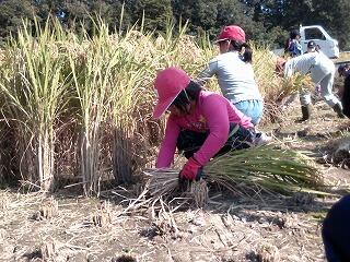 今年は、とても育ちがよく、株が大きくなったようです。当日は、とても暑い中、子どもたちが鎌で刈り、干すところまでやりました。