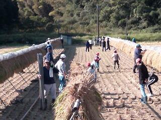米作り体験で、先日刈った稲の脱穀をしました。「笛水活性化委員会」「笛水環境保全協議会」の方々には、事前の準備をしていただき、この日を迎えることができました。