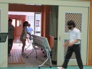 会場が出来上がった後、はじめの会と終わりの会のリハーサルを行いました。
