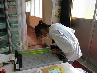 心を込めて座席に立てる名札を作っていました。個人情報を守るために、全身で名前が見えないようにしてくれました。