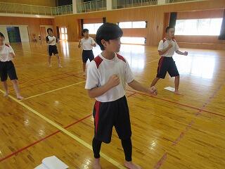 少林寺拳法の歴史や特徴についての説明から始まり、礼法や作法、そして基本的な動作などを教えていただきました。子どもたちは、初めてでしたが、とても楽しく、毎時間楽しみにしていました。とても貴重な体験となりました。ありがとうございました。
