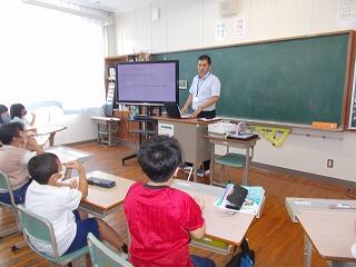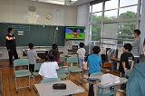3名の都城市国際交流員の方を招いて、国際交流学習を行いました。3名の方の出身国は、アメリカ、中国、モンゴルの方です。前半は、それぞれの国のことについて、クイズなどもまじえながら教えていただきました。今まで思っていたことと、違うこともたくさんあり、子どもたちは驚いていました。