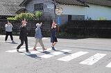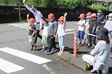 実際の横断歩道の渡り方についての学習では、まずは、6年生がお手本を見せました。