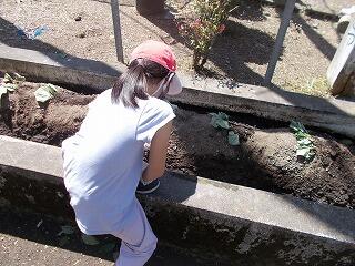 大きく育つように、草抜きなどの手入れをし、これから、ヘチマの成長の様子を観察していきます。