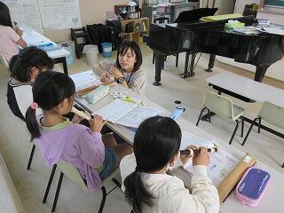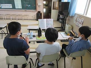 次に、リコーダーの練習をしました。個人で練習をして、最後は合奏です。8分の6拍子の難しい曲だったのですが、1つのグループが「先生、メトロノームを貸してください」と言って、メトロノームで練習をしました。自分たちで工夫した学びをしていることが頼もしいです。