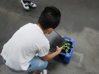 4年生の理科の時間に、へちまの苗の観察をしました。
