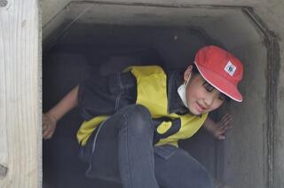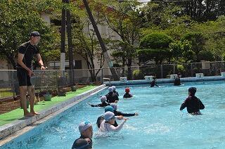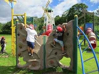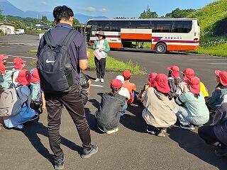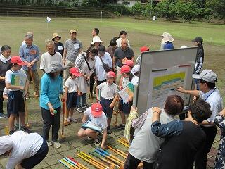 天気が少し悪かったので、渡り廊下を利用したのですが、体験の時間になると雨もやみ、外も使ってできました。