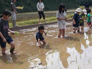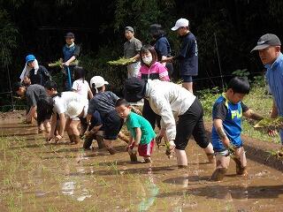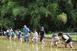 田植えから脱穀、餅つきまで、米作りについて体験しました。体験活動の段取りから田んぼの管理まで「笛水活性化委員会・笛水環境保全協議会」の皆様にしていただきました。そのお陰で、生き生きと子どもたちが体験することができました。また、保護者の皆様にも、餅つきや餅丸めなどにご協力いただき実施できました。
