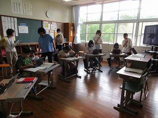 小学部1年生のタブレットが揃ったので、さっそく2時間目の休み時間にPC教室が開かれました。