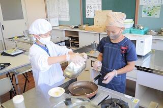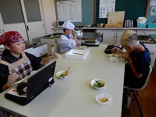 6年生と8年生で、家庭科の時間に、田人中から送られた山芋(自然薯)で調理実習をしました。