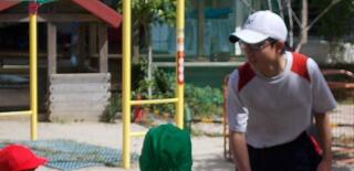 お父さんにサポートしてもらい