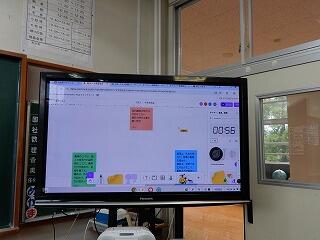 黒板と大型テレビ、生徒用PCを有効的に活用した、アナログとデジタルを融合した授業展開でした。