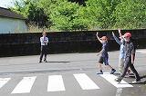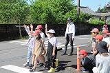 実際の横断歩道の渡り方についての学習では、まずは、6年生がお手本を見せました。