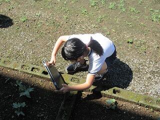 大きく育つように、草抜きなどの手入れをし、これから、ヘチマの成長の様子を観察していきます。