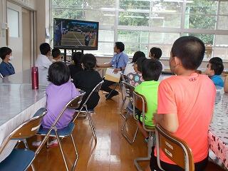 式の後に、宮本養護教諭から、夏休みの過ごし方についてお話がありました。みんなしっかりと聞いていました。