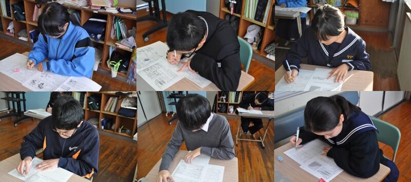 1月11日(木)、12日(金)、小学生はCRT、7年生(中1)は都北地区学力診断テスト、9年生は実力テストに挑戦しました。11日の実施教科は、小学生が国語、中学生は国語、理科、英語、12日の実施教科は小学生が算数、中学生が社会、数学でした。