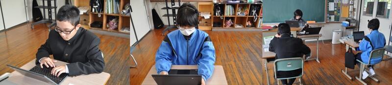 今回の調査はCBT方式をとっています。CBTとは、Computer Based Testing(コンピュータ ベースド テスティング)」の略称で、コンピュータを使った試験方式のことです。通信状況によっては、不具合が出る可能性もありましたが、今のところ大きな問題はないようです。タブレットを使ってのテストでしたので、選択問題はチェックすればよいのですが、キーボードを使っての文章での回答など、いろいろな回答方法があり、入力時間がかかるのではないかと心配されましたが、生徒は問題なく入力できているようでした。ただ、「画面上で、問題が表示されている所と回答を入力するところをスクロールして行ったり来たりしないといけないので面倒くさかったです。」というのが生徒の感想でした。