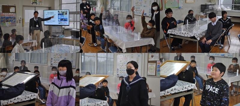 作文は家族のこと、学校のこと、地域のことなどを題材としており、いずれも素晴らしい発表内容でした。大勢の中で表彰されることは、小規模校で学んでいる本校の児童生徒にとって大変刺激的であり、名誉なことです。これを機に、ますます成長していって欲しいものです。