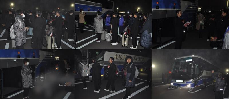 集合場所は、市場の駅セボンチマルシェでした。3校の位置関係から大体同じ距離にあります。私が5時40分に到着したときは、ほとんどの生徒が到着しているようでした。日曜日とあって、両親で見送りに来ているところが多かったです。6時から出発式を始め、修学旅行の意義や注意事項を確認しました。トイレを済ませ、大国方に見送られ、出発しました。