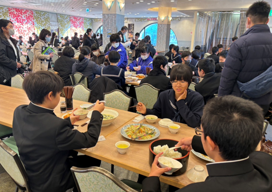 当然この日は給食がなく、家に帰って何を食べようかと悩んでいた生徒も多かったと思います。この日の実習は、そんな悩みも解決するタイムリーなものとなりました。弁当は中学校の先生にも、茶巾は小学生にもおすそ分けされました。