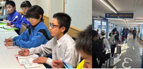 12月10日(日)、7年生(中1)が修学旅行へ6時20分に出発しました。修学旅行は、西岳中学校、夏尾中学校の1、2年生と合同で、12月12日までの2泊3日です。体調の悪い生徒もなく、元気に出発しました。
