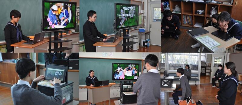 提出締切間近の撮影になったのは、体調が優れず2学期中に撮影できなかったためです。また、「みやざき動物愛護センター」に電話取材をするなど、調査やそのまとめに時間がかかったというのも理由の一つです。動画の撮影に入る前に、発表、カメラ撮影、発表原稿のチェックなどの分担、読むスピード、立つ位置などを十分確認した上で良い動画となるように、一丸となって頑張りました。3回の撮り直しとなりましたが、納得のいく動画が出来上がったようです。