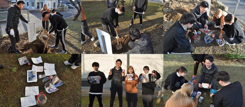 1月5日(金)、本校の卒業生3名が来校し、タイムカプセルを掘り起こしました。卒業生は今年20歳の成人式を迎え、担任の先生との約束を果たしたようです。