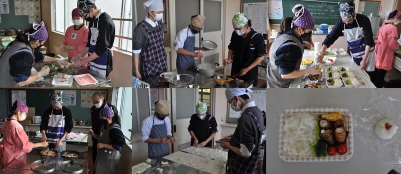 1月9日(火)、3学期がスタートしたばかりですが、中学生が調理実習に取り組みました。この日作ったのは、肉まきやまいも、やまいもの茶巾ですが、ご飯を炊き、卵焼きやミニトマト、レタスも添えて弁当を作り、持ち帰りました。