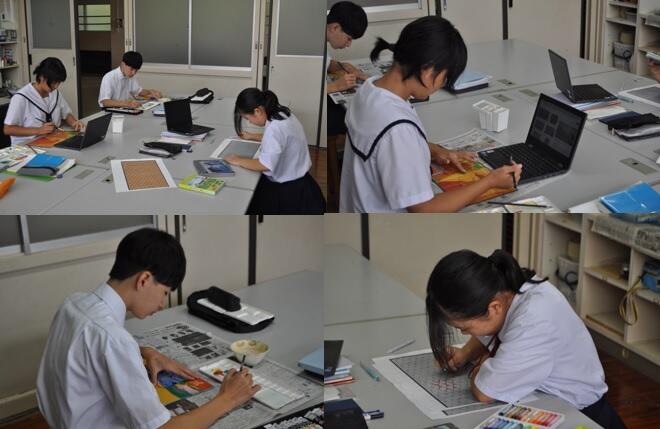 9月25日(月)、9年生(中3)が美術の授業で、屏風づくりに取り組みました。屏風といっても、大きなものではなく、広げたらA4判ぐらいの大きさのミニサイズです。