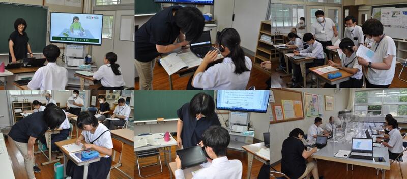 校長先生を除く、教頭先生を含め全ての先生方の授業を参観していただきましたが、特に3校時の門田先生による9年生の理科の授業は研究授業として位置付けられており、その他の先生方にはマンツーマンでフィードバックをしていただきました。すべての授業でICTが活用されており、来校された先生方の評価も良かったようです。授業だけではなく、早朝より生徒の登校の様子、給食の様子、清掃の様子も見ていただきました。あいさつ、素直さ、テキパキした行動、熱心な授業態度など、来訪者から良い評価をしていただきました。