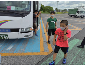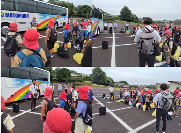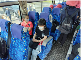 朝の会・事前指導を終わらせてバスへ乗り込みました。