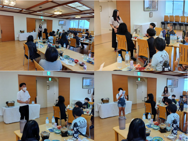 中学生は、8月に行われる弁当の日に向けて、どのようなことに気を付けて作ったら良いのか考えました。①栄養のバランスを考えること、②いろいろな調理法・味付け、③5色の食材を使って彩り良くという3つのポイントについて理解し、実際にメニューを考えました。
