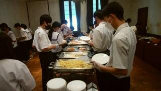 7月19日(火)、9年生(中学校3年生)が家庭科の時間に調理実習に取り組みました。この日作ったのは、マドレーヌ、餃子の2品でした。