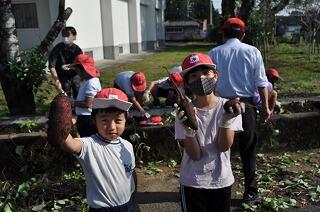結構、大きく育った芋たちが収穫できましたが、例年とすると、小さめではあったようです。歓声とともに、どんどん芋を掘っていました。自分たちで育てた芋は、さぞかしおいしいことでしょう。食べるのが楽しみです。