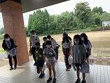 難完了。運動場で、先生方からのお話を聞