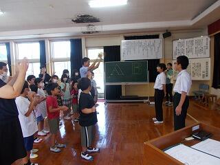 式の後に、宮本養護教諭から、夏休みの過ごし方についてお話がありました。みんなしっかりと聞いていました。