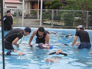 6月26日(水)の2、3校時に、生目台東小の年永先生に来ていただき、水泳教室を行いました。