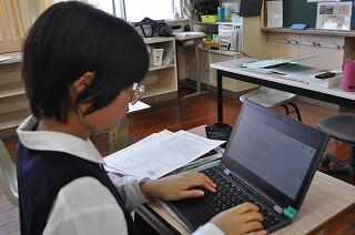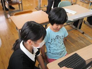 小学部1年生のタブレットが揃ったので、さっそく2時間目の休み時間にPC教室が開かれました。