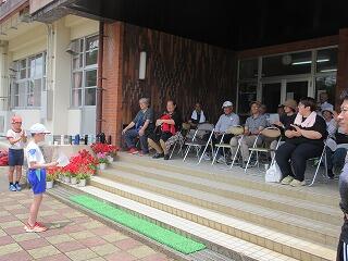 閉会式:1年生4人が、地域の方にお礼を言いました。
