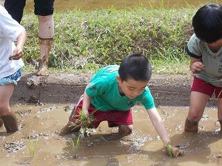 まず、6月2日(日)に「田植え」を行いました。事前に、田んぼや苗等の準備をしていただき、当日は機械植えと手植えを行いました。これから、稲刈り、脱穀、餅つきと実施する予定です。