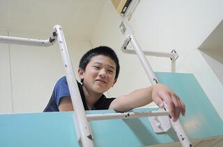 2段ベットの上で、他の学校の友達と交流中